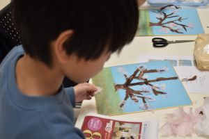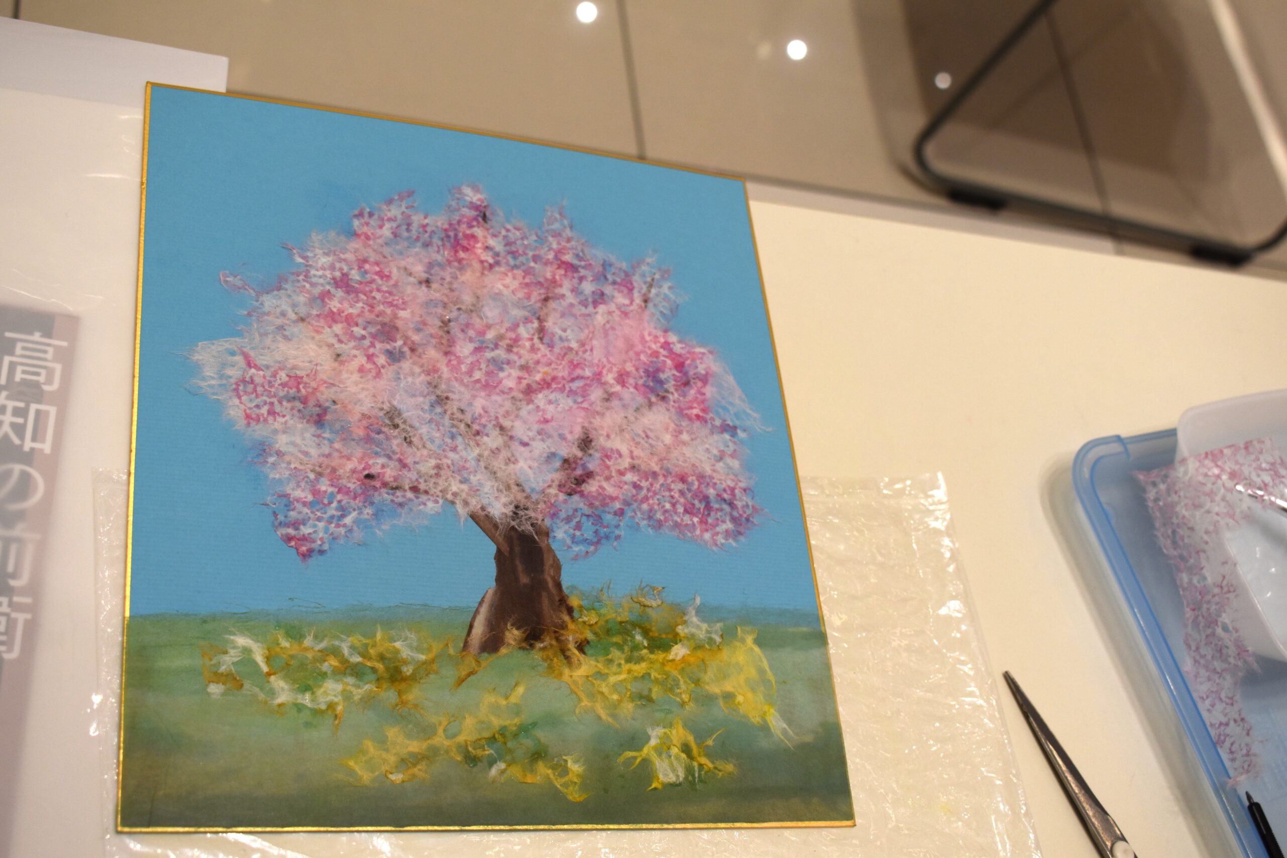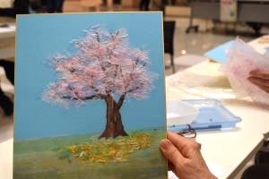 「桜」を題材とし、参加者の皆様にはそれぞれが思い描く桜の木を、和紙を使って表現していただきました。